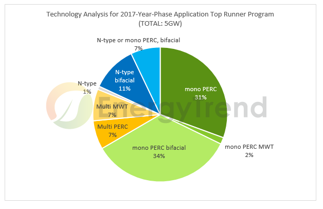 Analysis for 2017-Year’s Top Runner Program: Mono-si Surpasses 80%, and the Bifacial Technology Spurs