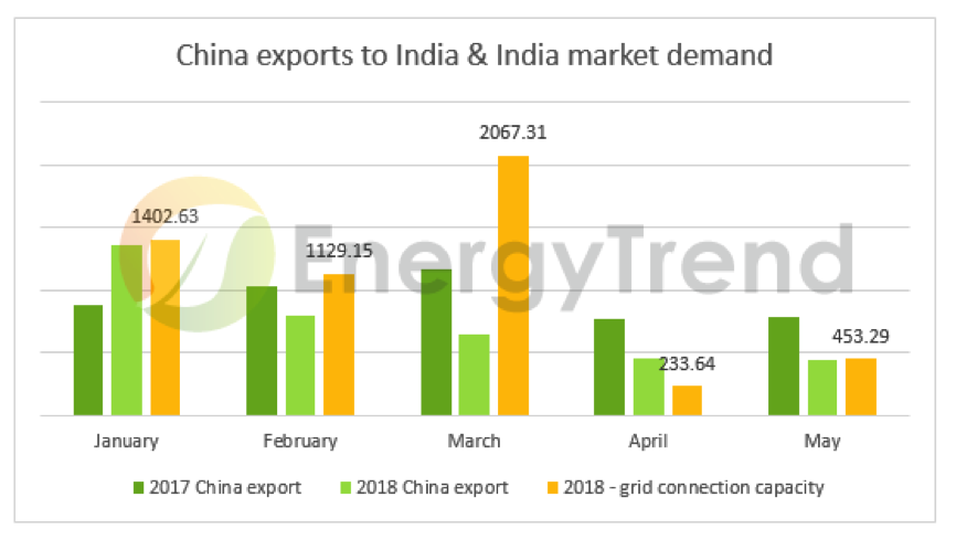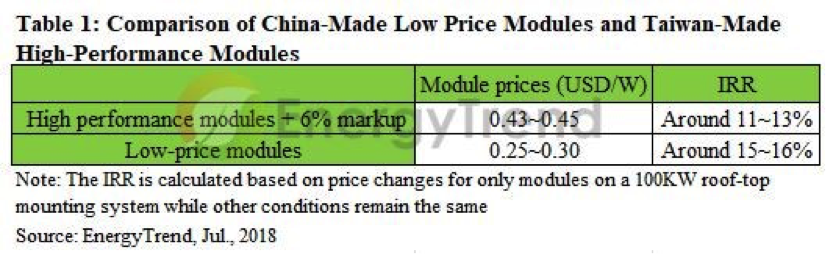 According to the latest research of EnergyTrend, a division of TrendForce, Chinese domestic solar market has been shirking after the release of new PV policy. Faced with the oversupply, Chinese module makers will seek ways to export the excessive products, or even sell off the products to overseas markets. Therefore, the global solar industry has paid intense attention to the price trends of modules and when EPC companies would place orders.