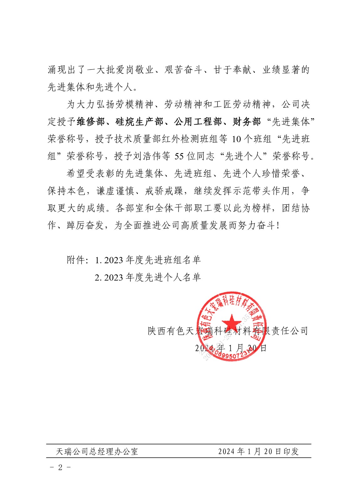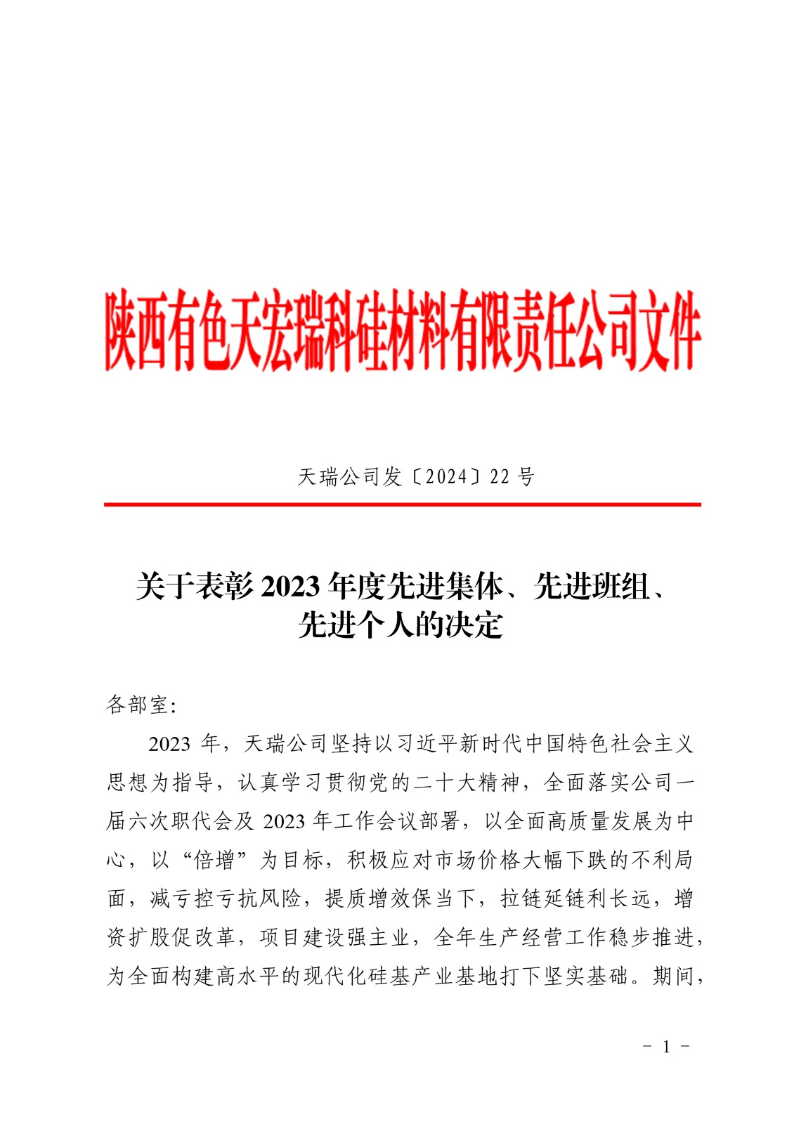 关于表彰2023年度先进集体、先进班组、先进个人的决定