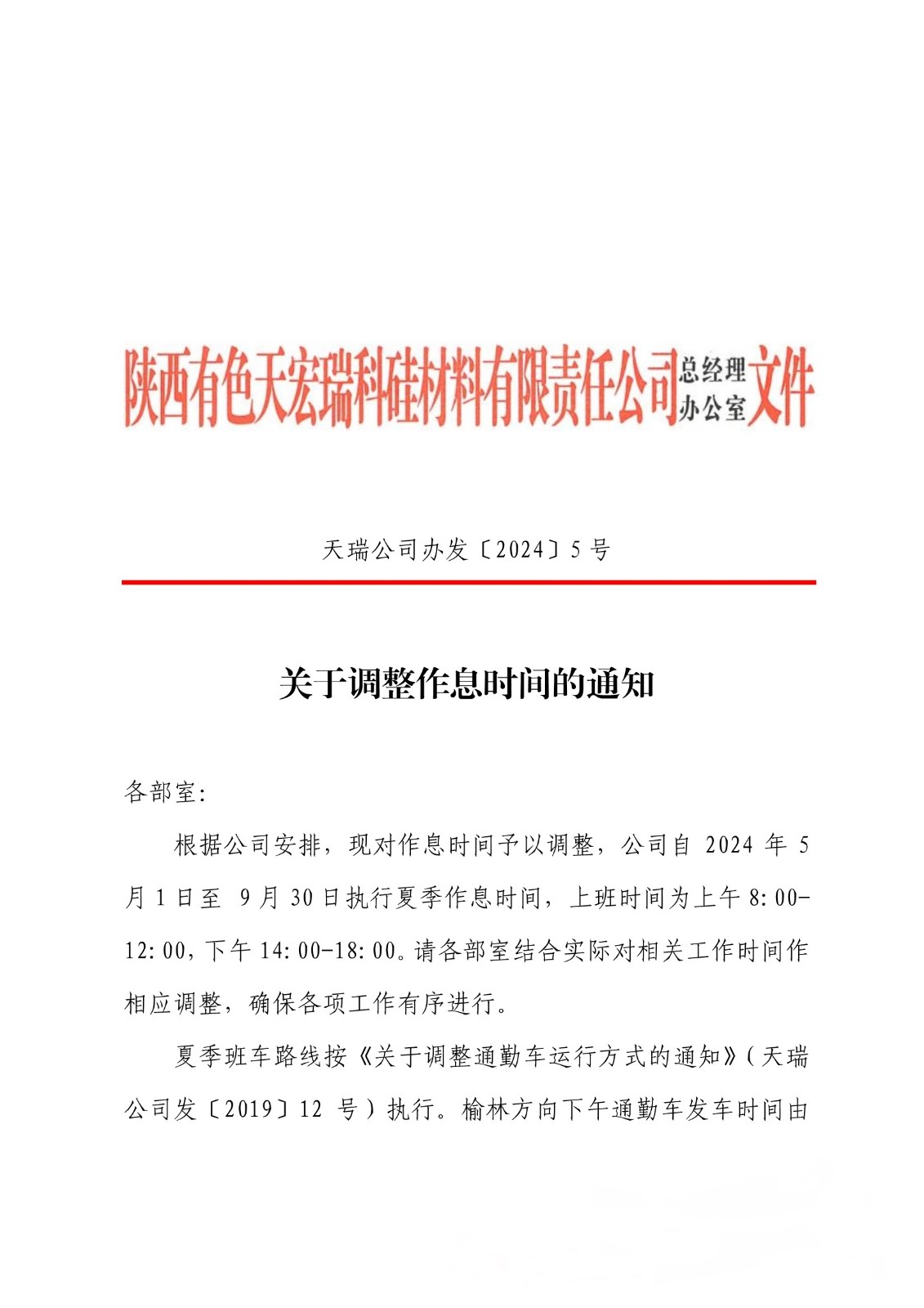 关于调整作息时间的通知
