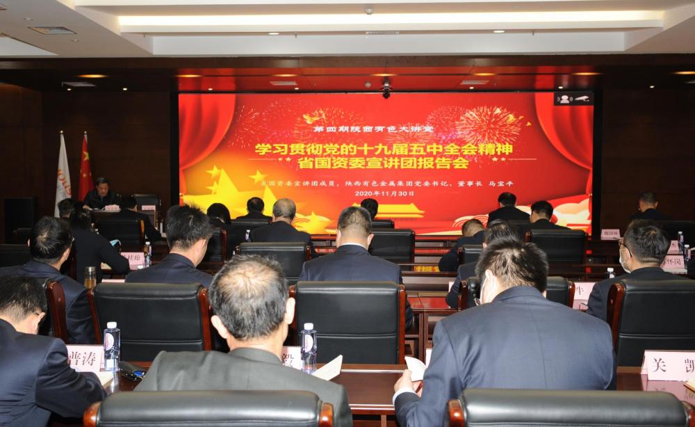11月30日,学习贯彻党的十九届五中全会精神省国资委宣讲团报告会在陕西有色金属集团举行。省国资委宣讲团成员、陕西有色金属集团党委书记、董事长马宝平作宣讲报告,党委副书记、董事王小庆主持。 -