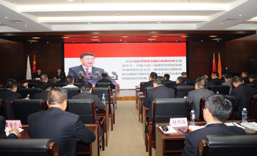 11月19日下午,集团公司在总部召开了党的十九届四中全会精神宣讲部署动员会。 -