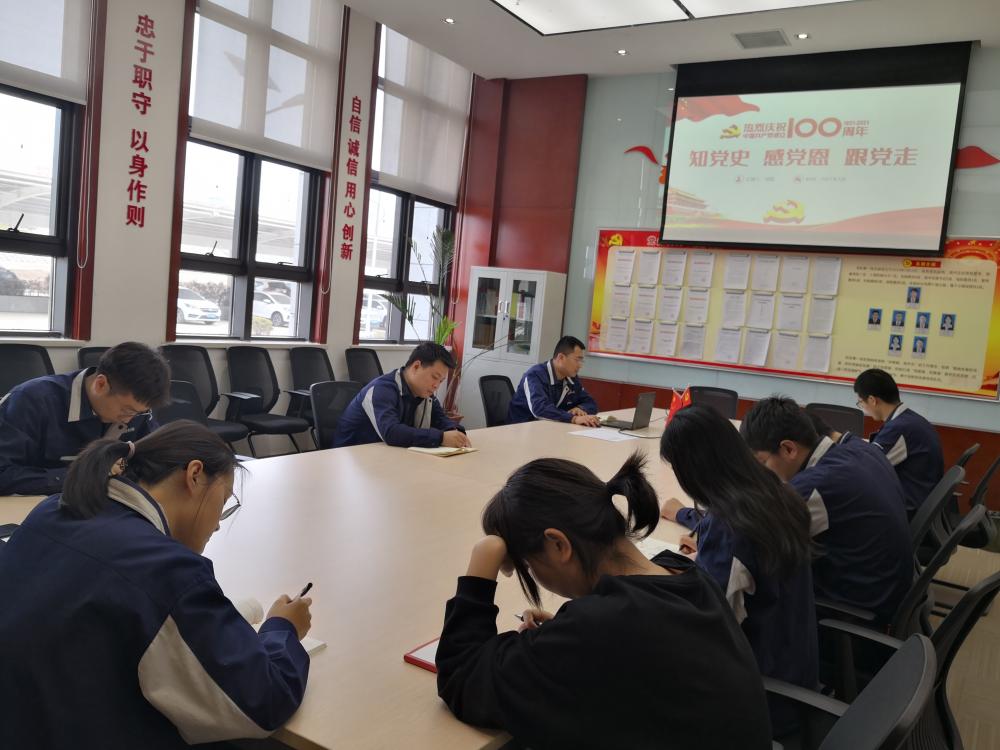 公司机关第一党支部组织在岗党员、入党积极分子进行了党课学习,支部书记胡磊主持会议并主讲“知党史、感党恩、跟党走”专题党课。 -